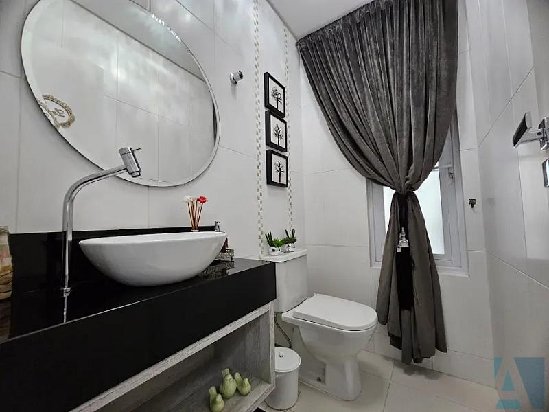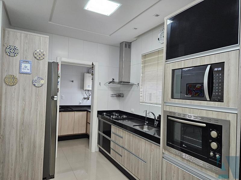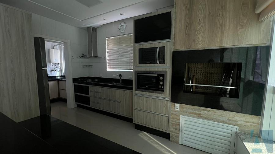 Sao 3 suítes, lavabo, ampla sala dois ambientes  com cozinha integrada e churrasqueira a carvao, lavanderia e duas vagas de garagem lado a lado.