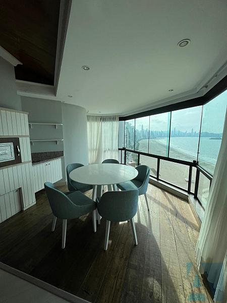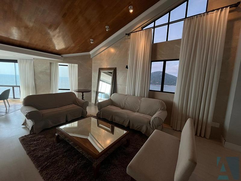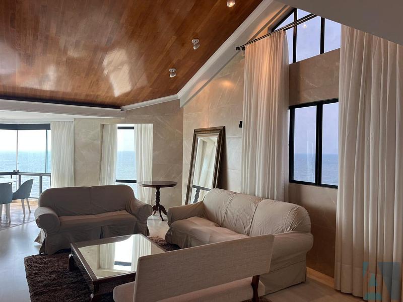 Uma cobertura triplex frente mar, 4 suites mais dependencia de empregada com banheiro, lavabo, dispensa, sacada integrada com churrasqueira com belíssima vista mar, uma sala íntima, home office, sala ampla para tres ambientes, mezanino e 3 vagas de garagens, mobiliado.